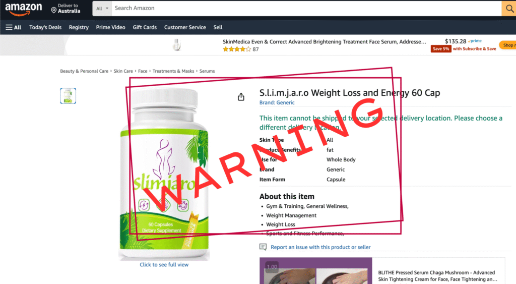 We strongly advise against ordering Slimjaro from Amazon, Walmart, eBay or Walgreens, as these sources often sell fake versions with entirely different ingredients, which can be very dangerous.